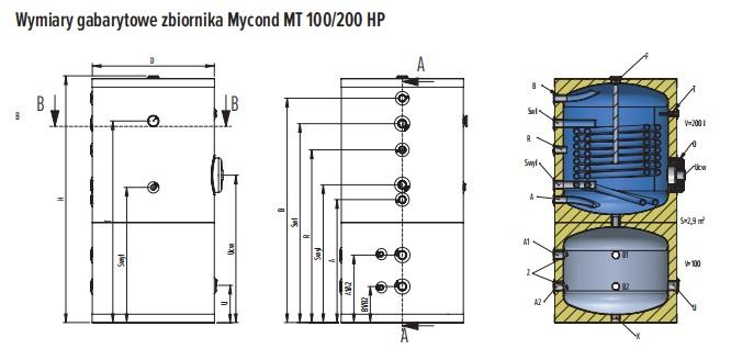 Zbiornik kombinowany MT 100/200 HP (Bufor 100l + Zasobnik CWU 200l) dla pomp ciepła