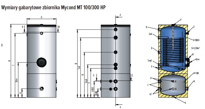 | Objętość zasobnika CWU / objętość bufora L1/L2 [l]: 300 / 100 |