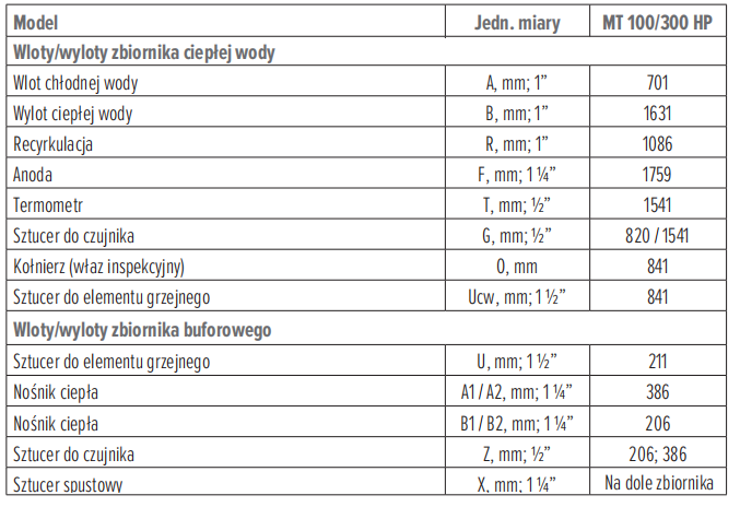 Zbiornik kombinowany (bufor / zasobnik CWU) MT... HP dla pomp ciepła